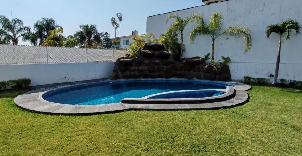 ◼Alberca con cascada con pequeño jacuzzi equipada con cuarto de bombas.